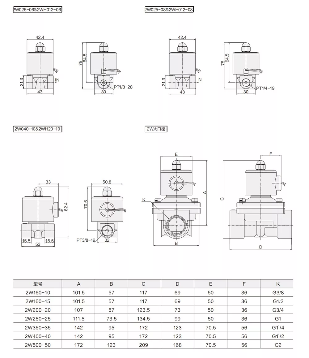 2W 2-cestný pneumatický solenoidový ventil normálne uzavretý solenoidový ventil má priamo pôsobiaci dizajn, postavený z presne opracovaného tela ventilu, vysoko výkonnej cievky, piesta z nehrdzavejúcej ocele a spoľahlivých tesniacich komponentov. Táto séria obsahuje dva typy prietoku: model s malým prietokom pre štandardné systémy a model s veľkým prietokom pre riadenie veľkokapacitnej kvapaliny.