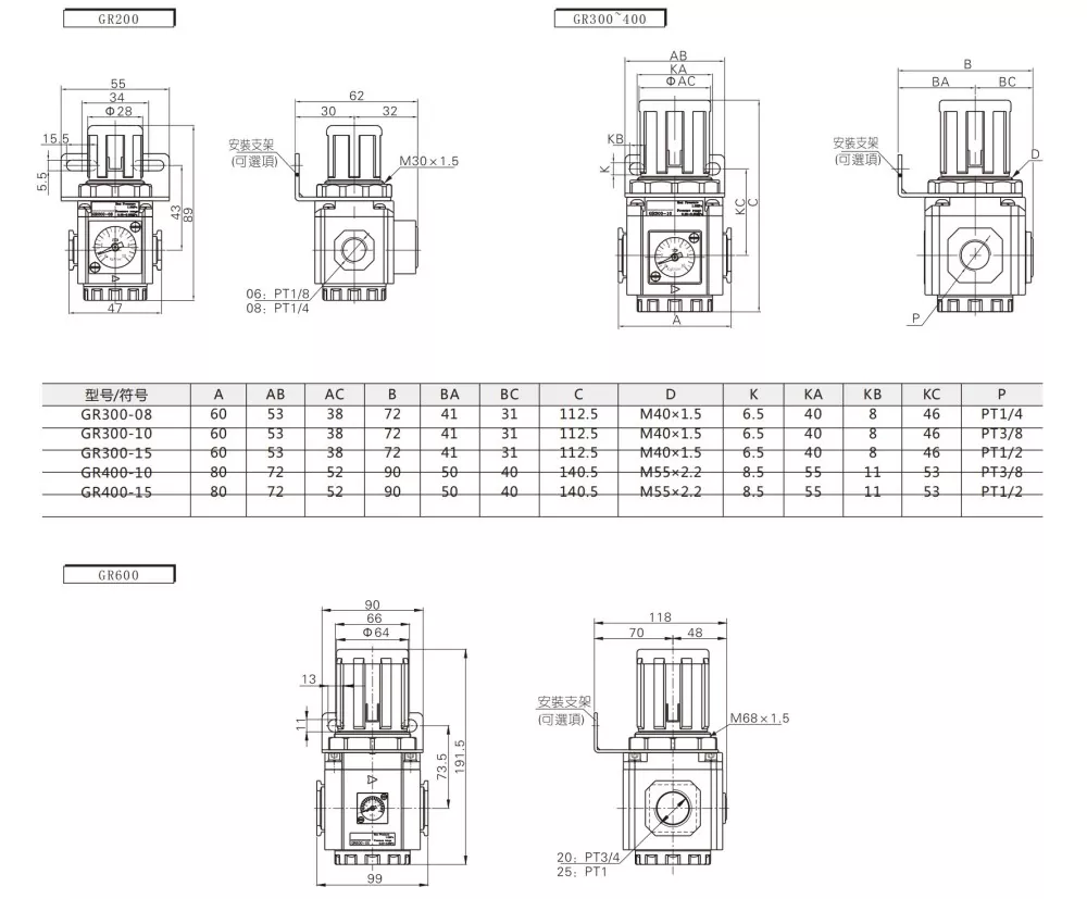 Regulátor tlaku série GR200
