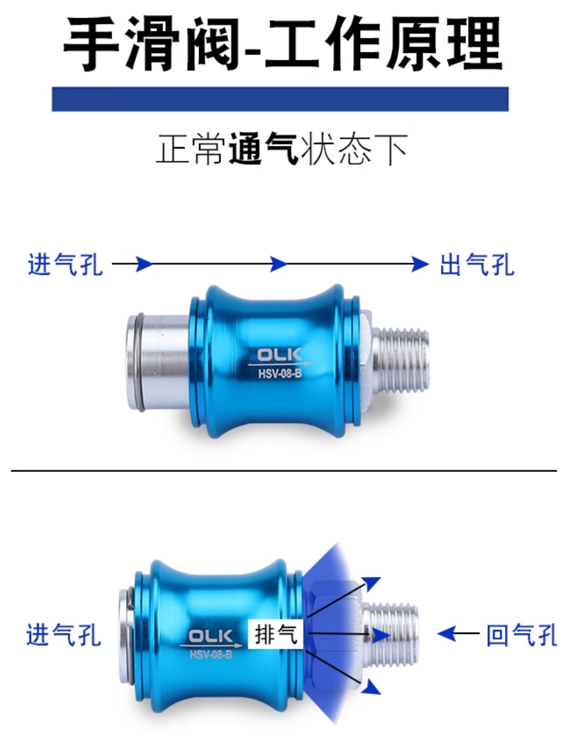 Samotný ventil ruky má funkciu tlakovej reliéfnej funkcie a tesniaci krúžok je tesnenie O-krúžku. Režim akcie je manuálny, čo nie je ovplyvnený tlakom. Niekedy sa dá použiť na vákuovom prísavke, ale jeho tesniaci výkon je navrhnutý podľa pozitívneho tlaku. Generovaný únik je tolerovateľný pre jeho tlak použitia. Pri aplikácii vákua je v situácii veľkého sania alebo veľkého prietoku a dodávka plynu nepretržitá, pretože je lacná a ľahko ovládateľná, môže sa skutočne použiť, ale pre niektoré malé prietokové vákuové generátory alebo na detekciu vákuu a iné príležitosti s vysokými požiadavkami na tesnenie ho nemôžu použiť.