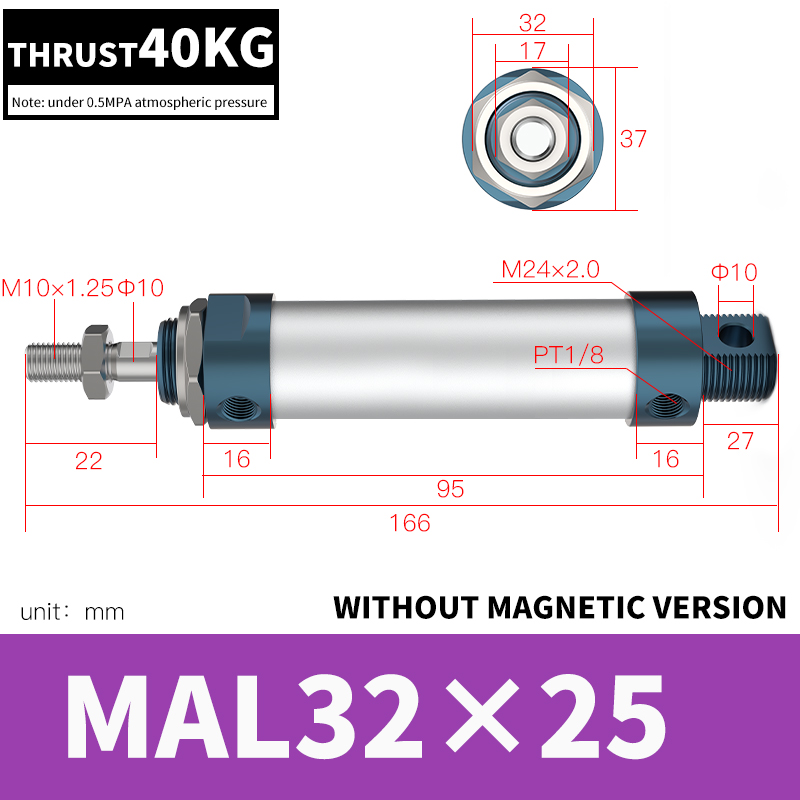 PNEUMATICKÝ 32mm vrták 25mm zdvih vzduchový valec Dvojčinný s Y konektorom a 2 ks 6mm PC fitingom MAL32x25