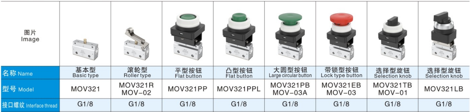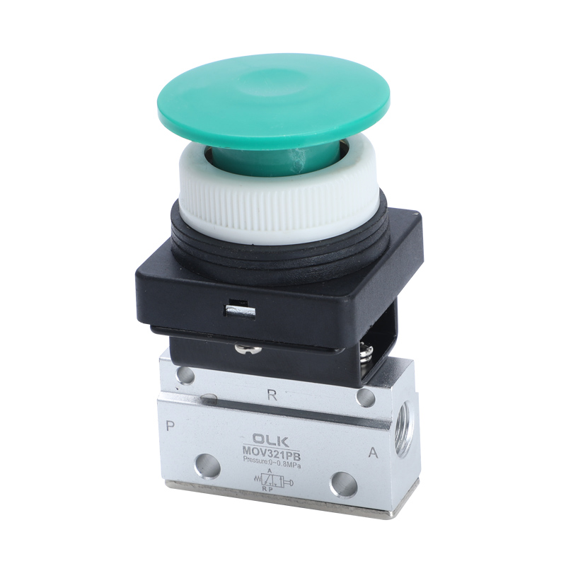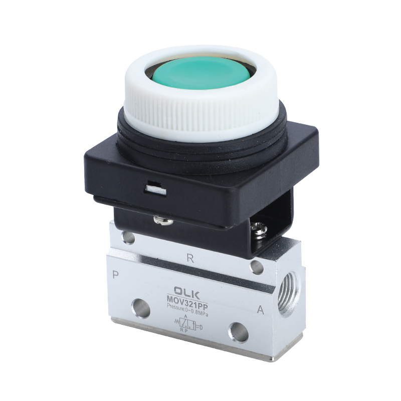 Ventil série MOV321 môže ovládať jednostranné valce s priemermi rozhrania M5 a G1/8. P znamená vstup do vstupu, pre výstup a výfukový port je umiestnený na tlačenej tyči.