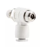 Kolenové ventily na reguláciu prietoku série OLK SLsú kvalitné pneumatické regulátory otáčok určené pre presnú reguláciu otáčok pohonu. S jednoduchou, ale spoľahlivou konštrukciou, každý ventil integruje škrtiaci mechanizmus a jednosmerný spätný ventil, čo umožňuje riadené prúdenie vzduchu v jednom smere a zároveň umožňuje voľný spätný tok.