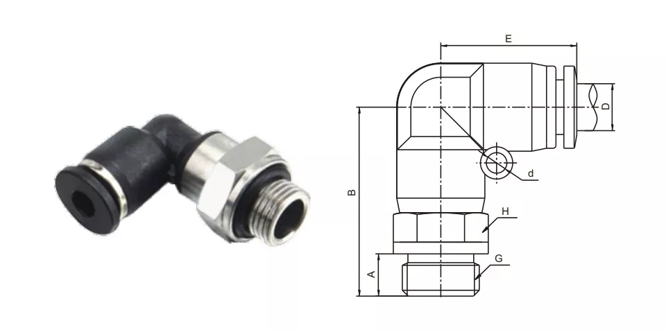 PL-G Mužský lakťový lakť za stlačenie trubice je 90-stupňový konektor lakťa a vlákno G ideálne na použitie v uväznených priestoroch alebo kde sa vyžaduje presmerovanie hadičiek. Vypravte sa s tesniacimi krúžkami, aby sa zabránilo úniku vzduchu alebo tekutiny.