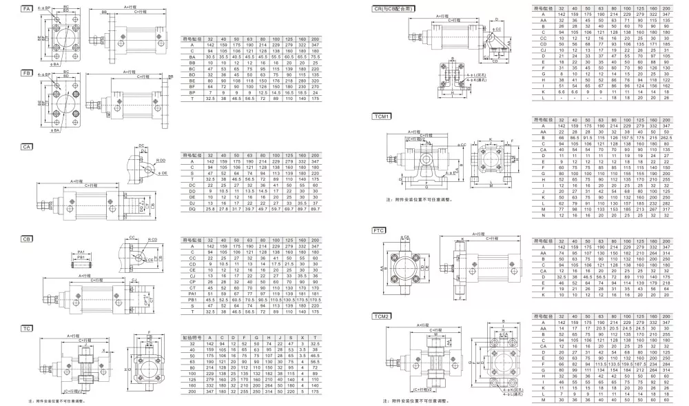 Pneumatický valec SU a vzduchový valec SI nie je možné zameniť a príslušenstvo (CA /CB držiaky nôh,FA-príruby,TC-M, kĺbové hlavice) nie sú kompatibilné