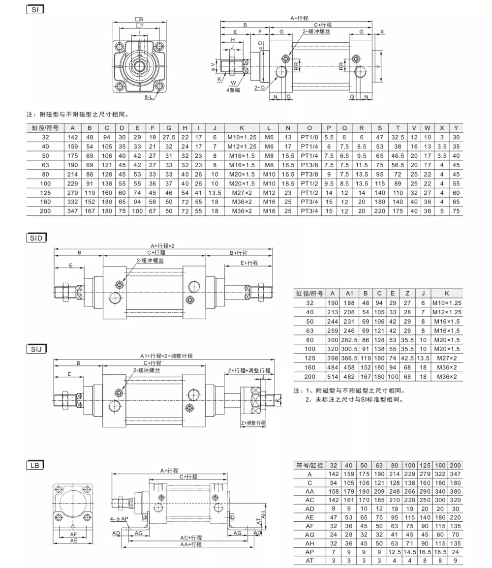 Štandardný pneumatický valec ISO15552 série SI je dostupný v troch typoch: štandardný dvojčinný, dvojčinný dvojčinný SID a dvojčinný dvojčinný SIJ s nastaviteľným zdvihom. Vyhovujú norme ISO 15552, čo znamená, že ich inštalačné rozmery sú väčšie akoSU pneumatické valcerovnakej veľkosti. Pevné príslušenstvo nie je zameniteľné a je kompatibilné iba so špecifikáciami ISO 15552 (predtým ISO 6431).