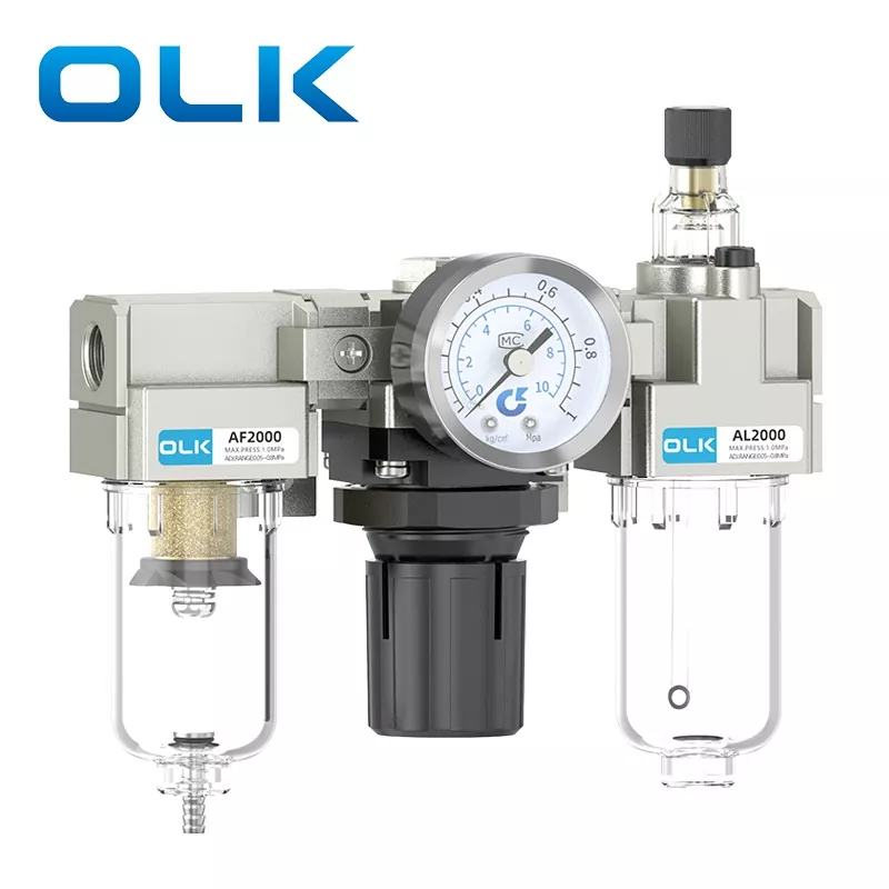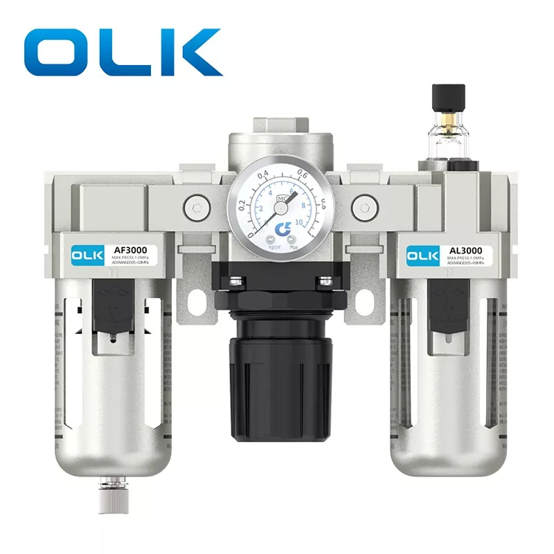 Jednotka SMC typu AC FRL (Filter-Regulator-Lubricator) je základný pneumatický komponent, ktorý integruje filtráciu zdroja vzduchu, redukciu a reguláciu tlaku a úpravu mazania. Poskytuje čistý, stabilný a mazaný stlačený vzduch pre pneumatické systémy, čím predlžuje životnosť pneumatických komponentov a zvyšuje stabilitu systému. Jednotka FRL OLK AC série pôsobí ako nevyhnutný „strážca“ moderných pneumatických systémov.