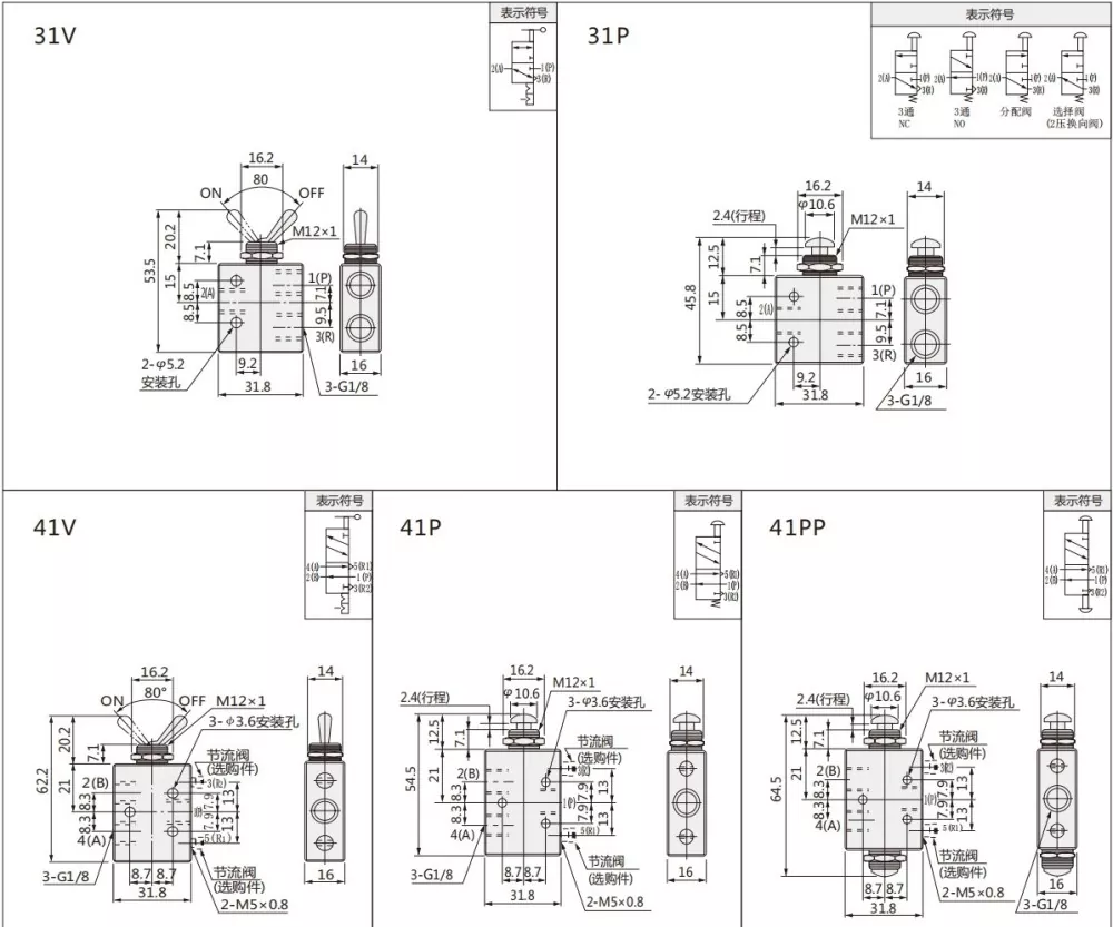 Dá sa rozlíšiť prepínací ventil a mechanický ventil podľa riadiaceho typu: prepínací ventil je pinovaný typ držania páky, mechanický ventil je typ tlačidla push-pull alebo typ valca